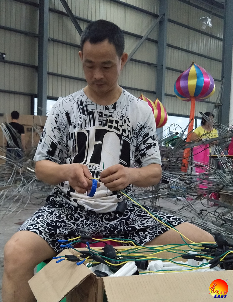 來自電工崗位萬志祿告訴我們,自己已在彩燈行業干了二十余年,先后三次到美國參加燈組制作。談到工作,萬志祿說到:“燈貿集團對燈組要求極高,比如說燈泡的朝向、仰臥的角度、燈組固定的方式,都有嚴格的要求和基本的標準。在去國外制作安裝燈組的時候,我們一線工人都是保持嚴謹的態度去做好自己的本職工作,特別是看到自己親手參與制作的燈組在國外亮起來的時候,心中的自豪感油然而生。”