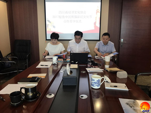 授牌儀式后,舉行了自貢燈貿集團股份有限公司與四川省經濟文化協會“2017秘魯中國熊貓彩燈文化節”合作簽字儀式。