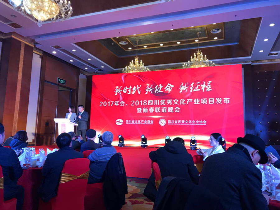 2018年1月25日,四川文化產(chǎn)業(yè)商會、四川省民營文化企業(yè)協(xié)會“新時代、新使命、新征程——2017年會、2018四川優(yōu)秀文化產(chǎn)業(yè)項目發(fā)布暨新春聯(lián)誼會”在成都世紀城洲際酒店隆重召開。