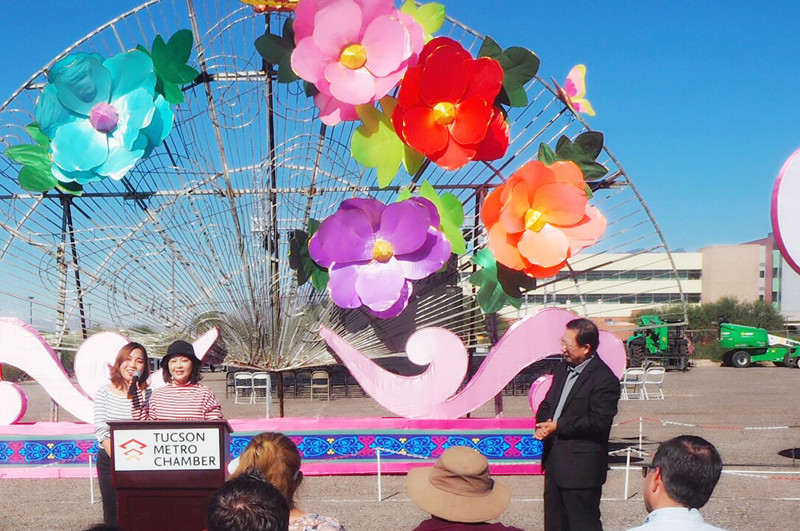Pima郡行政長官Ramon Valadez,圖森市常務(wù)副市長Richard G. Fimbres,圖森市大都會商會董事長Amber Smith分別發(fā)表致辭,感謝本次燈展活動對中美文化交流作出的巨大貢獻(xiàn),希望促進(jìn)多元化的世界文化交流。他們在講話中贊嘆東方彩燈精妙絕倫的制燈工藝,稱“2018世界之光圖森彩燈嘉年華”用傳統(tǒng)、時尚、新鮮、現(xiàn)代的元素直面美國觀眾。當(dāng)?shù)仉娕_、電視臺、報紙等17家新聞媒體出席新聞發(fā)布會并對燈展進(jìn)行了相關(guān)報道。