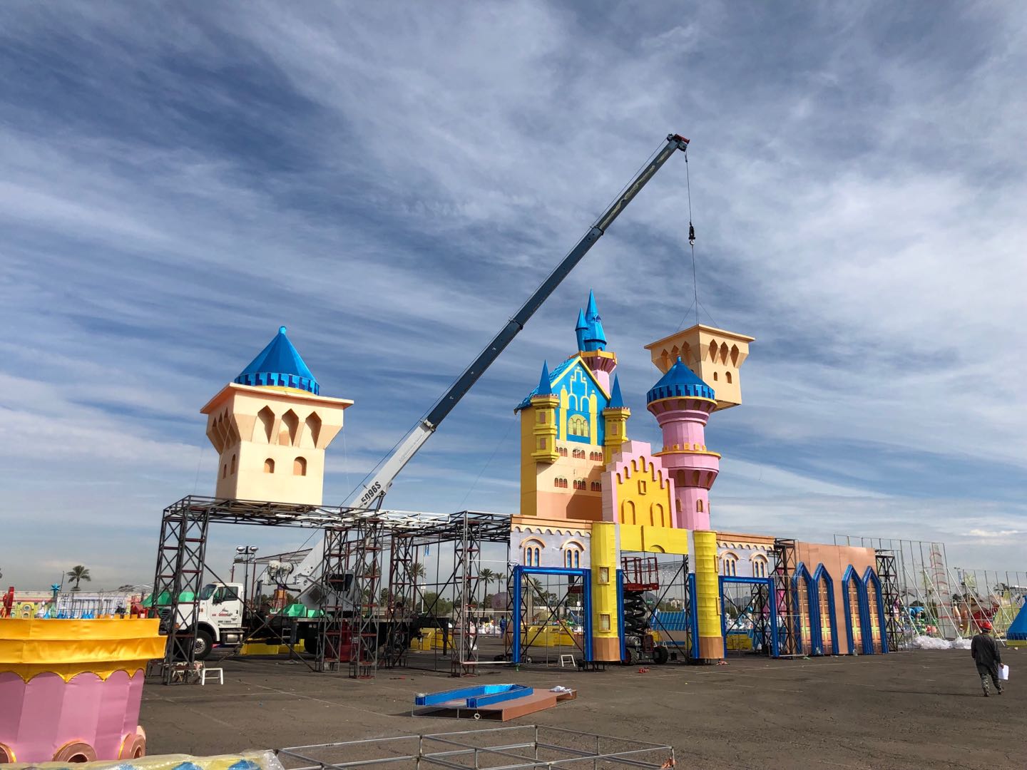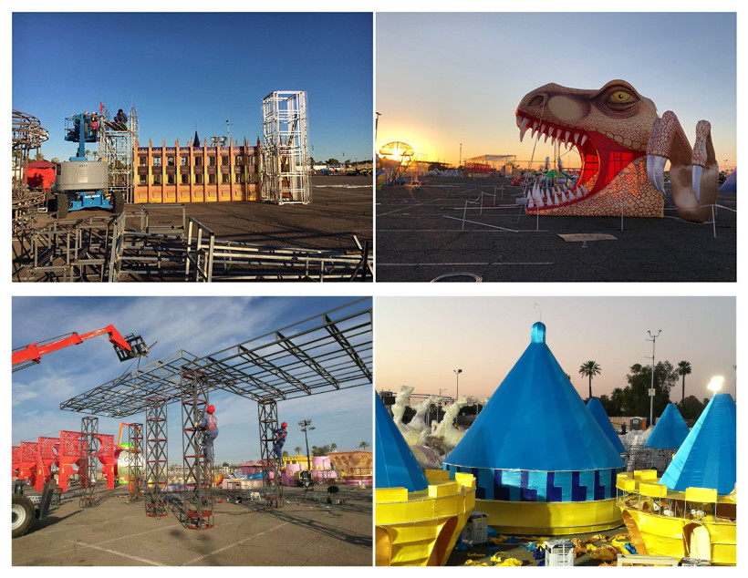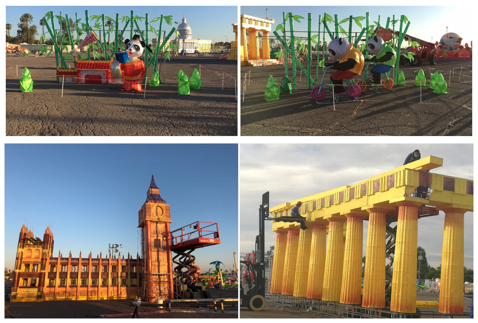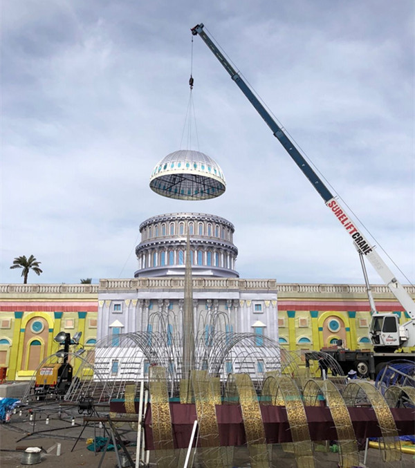 藍(lán)天白云、晴空朗朗,技藝高超的工匠師傅正將燈組配件完美的安裝到預(yù)定位置。每個(gè)人都在盡最大努力,希望用兩周后開(kāi)幕的世界之光-2018菲尼克斯彩燈嘉年華”,為菲尼克斯及世界人民送上來(lái)自東方的圣誕祝福。