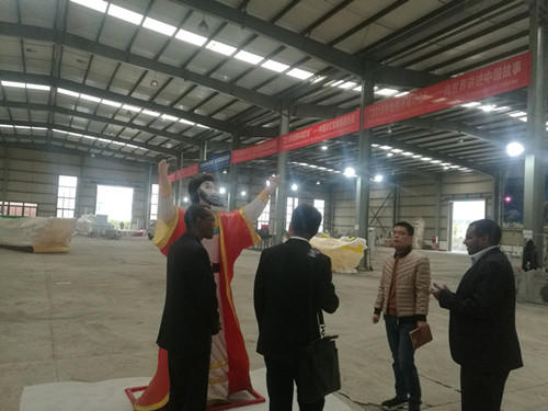 總領事Kebede Abera Ido一行在自貢燈貿集團國韻公司副總經理明祥東的陪同下參觀了東方彩燈出口基地生產車間,詳細了解了彩燈燈品制作、彩燈境外展出等相關情況。隨后,總領事Kebede Abera Ido一行來到燈貿集團會議室,聽取自貢燈貿集團“東方彩燈·點亮世界”全球巡展項目及公司近年外展情況的全面匯報。
