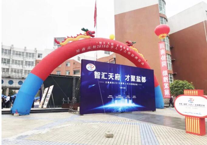 2019年4月12日,自貢燈貿集團股份有限公司應邀參加人力資源和社會保障局主辦的“智匯天府,才聚鹽都”為主題的川南高校2019春季人才大招聘活動,舉辦地址位于自貢市自流井區輕化工大學內。