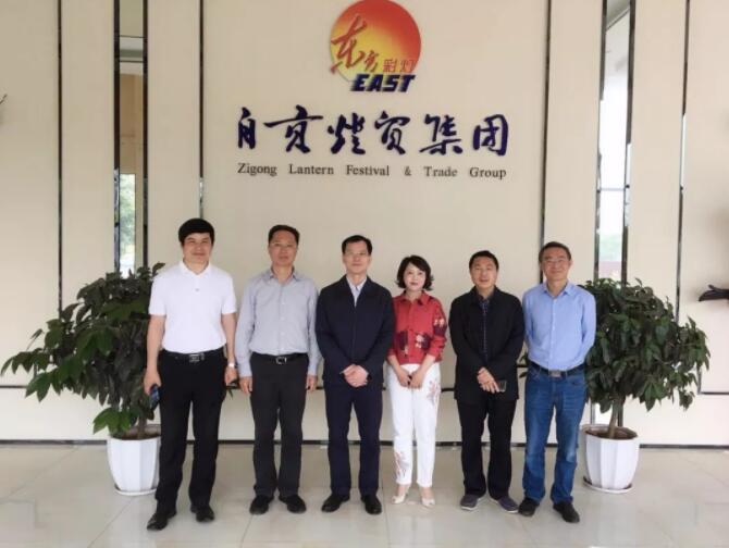 2019年4月19日上午,省委外宣辦(省政府新聞辦)副主任代光舉、省委宣傳部國際傳播與對外推廣處處長孫建華、省委宣傳部改革指導處處長孟華一行就國家文化出口基地工作方案蒞臨自貢燈貿(mào)集團股份有限公司考察調(diào)研。自貢市市委常委、宣傳部長唐杰,市委宣傳部常務副部長萬一,市貿(mào)易促進會會長陳謀華等領導陪同調(diào)研。