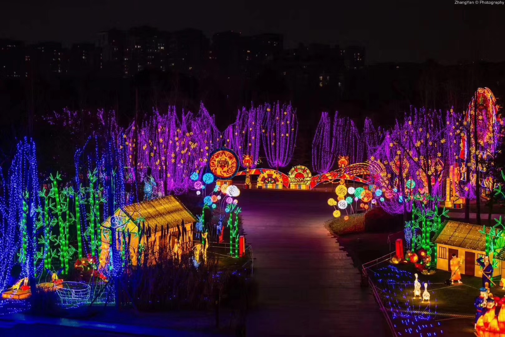 遺跡館外的“古蜀家園”也是本屆太陽節(jié)規(guī)模較大的燈組之一。竹林、小屋、麋鹿等景觀再現(xiàn)古蜀國的自然生態(tài)環(huán)境。彩燈刻畫出一組一組栩栩如生的景色,再現(xiàn)古蜀生活時(shí)的盛大場景。