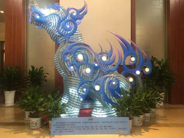 為彰顯自貢彩燈文化名片,市政府有關(guān)部門精選自貢燈貿(mào)集團(tuán)股份有限公司自有品牌“東方彩燈”出品的兩組具有傳統(tǒng)彩燈藝術(shù)特色燈組—“瑞鶴”、“諦聽”呈放接待現(xiàn)場(chǎng)。