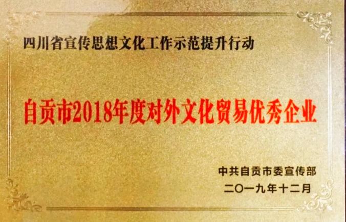 自貢燈貿集團股份有限公司擁有30年彩燈文化行業史,以其卓著的境外展出業績,榮獲中共自貢市委宣部頒發--四川省宣傳思想文化工作示范提升行動“自貢市2018年度對外文化貿易優秀企業”稱號。