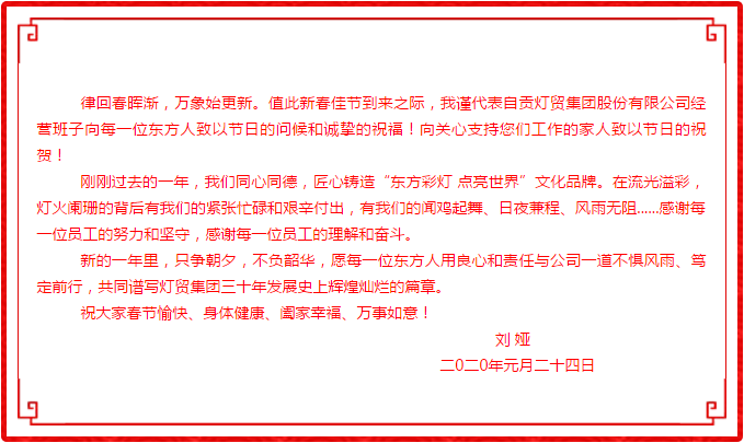 自貢燈貿集團股份有限公司董事長劉婭 新春致辭