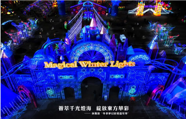 休斯敦“冬季夢幻彩燈嘉年華”分為“冬夢奇景”、“共同的世界”、“遠古的呼喚”、“東方之燈”等七大主題板塊,展出燈組數近200余組。