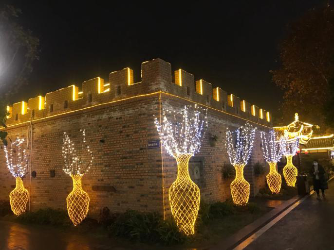 燈貿(mào)集團承制的“吃耍成都—龍騰梵谷燈之夜”文旅消費新場景,以溫情祥瑞為主題,契合園區(qū)特色,依景布設,用生動的彩燈藝術(shù)呈現(xiàn)了一臺清新脫俗的光影夜宴,為游人和食客創(chuàng)造了別樣的夜游體驗。