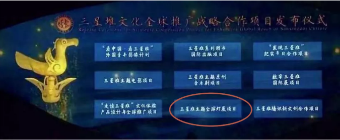 為充分發揮三星堆的文化價值,建立三星堆全方位的文化傳播體系,三星堆博物館于2020年與自貢燈貿集團簽署合作協議。雙方通過彩燈等形式傳播和傳承三星堆文化以及演繹、活化三星堆文化IP。