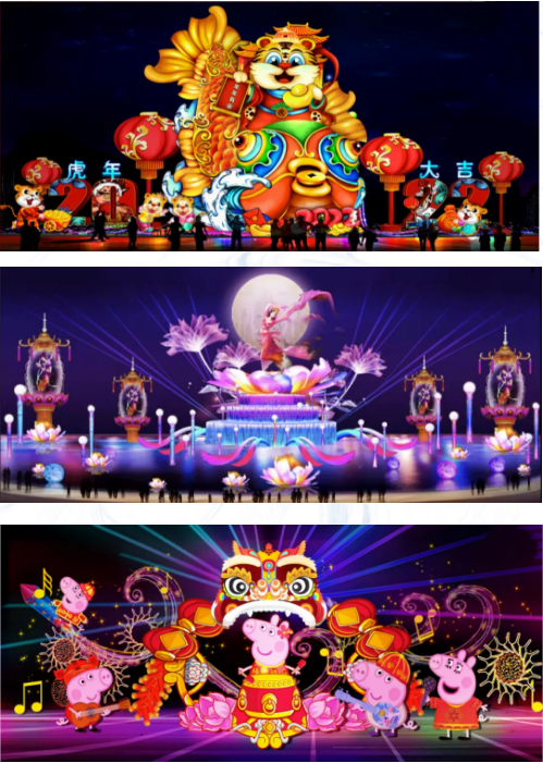由燈貿集團承制的2022“臨洮新春國潮文化彩燈嘉年華”以“文化”為發散點進行展開,用臨洮在歷史上具有代表性的幾個時代作為節點,如:新石器時代、春秋、秦朝、唐朝、元朝、明朝、民國、當代,以時間線進行串聯,讓游客在整個活動內的體驗就像經歷了一次時光旅行,感受不同時代的臨洮文化、體驗時代賦予的臨洮腔調。燈展充分結合岳麓山重點人文景點使其燈景相映把景區打造成一個歡樂祥和、絢麗多彩的夢幻燈光世界。大體量,精制作的巨型燈組故事群,將亮相臨洮長達1300多米的“洮惠渠”,這將是全國有史以來最長的“水渠光影秀”。