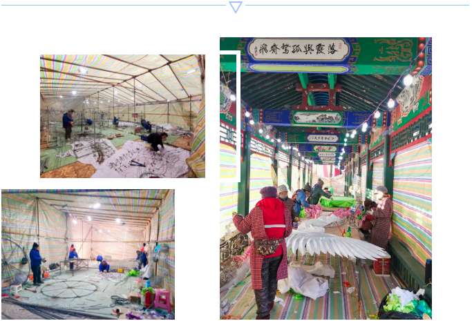 (施工現場,天寒地凍,東方彩燈工匠們干勁似火。)